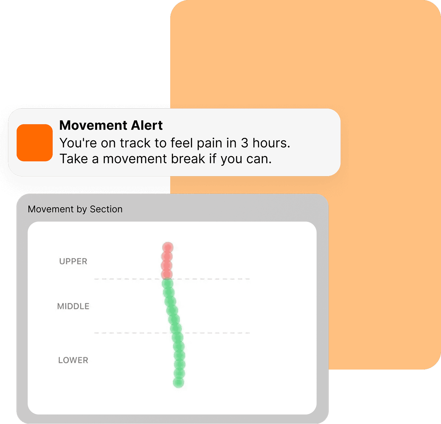 A color-coded map shows which sections of your spine are moving well, and which are stiff. Get notified when it's time to move.