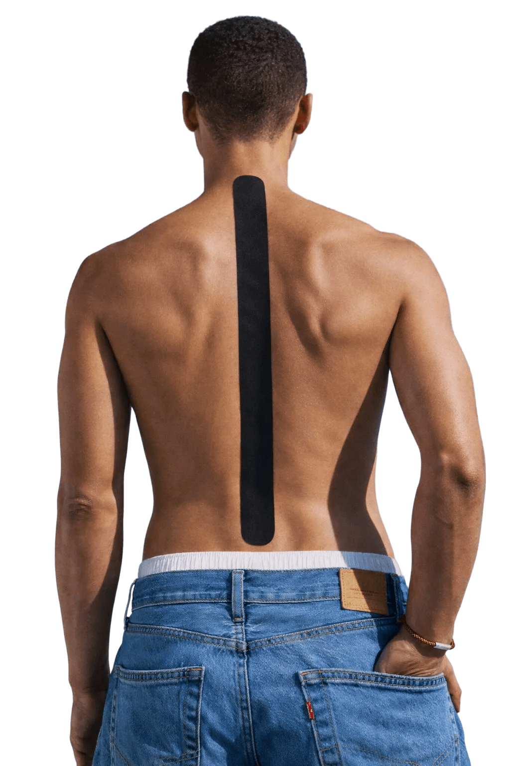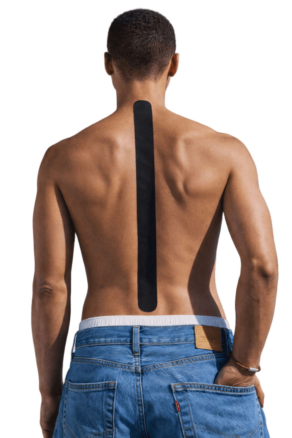 The sensor strip slips into medical-grade sports tape. You stick it along your spine like you would any athletic tape. It takes 30 seconds, and it lasts all day.